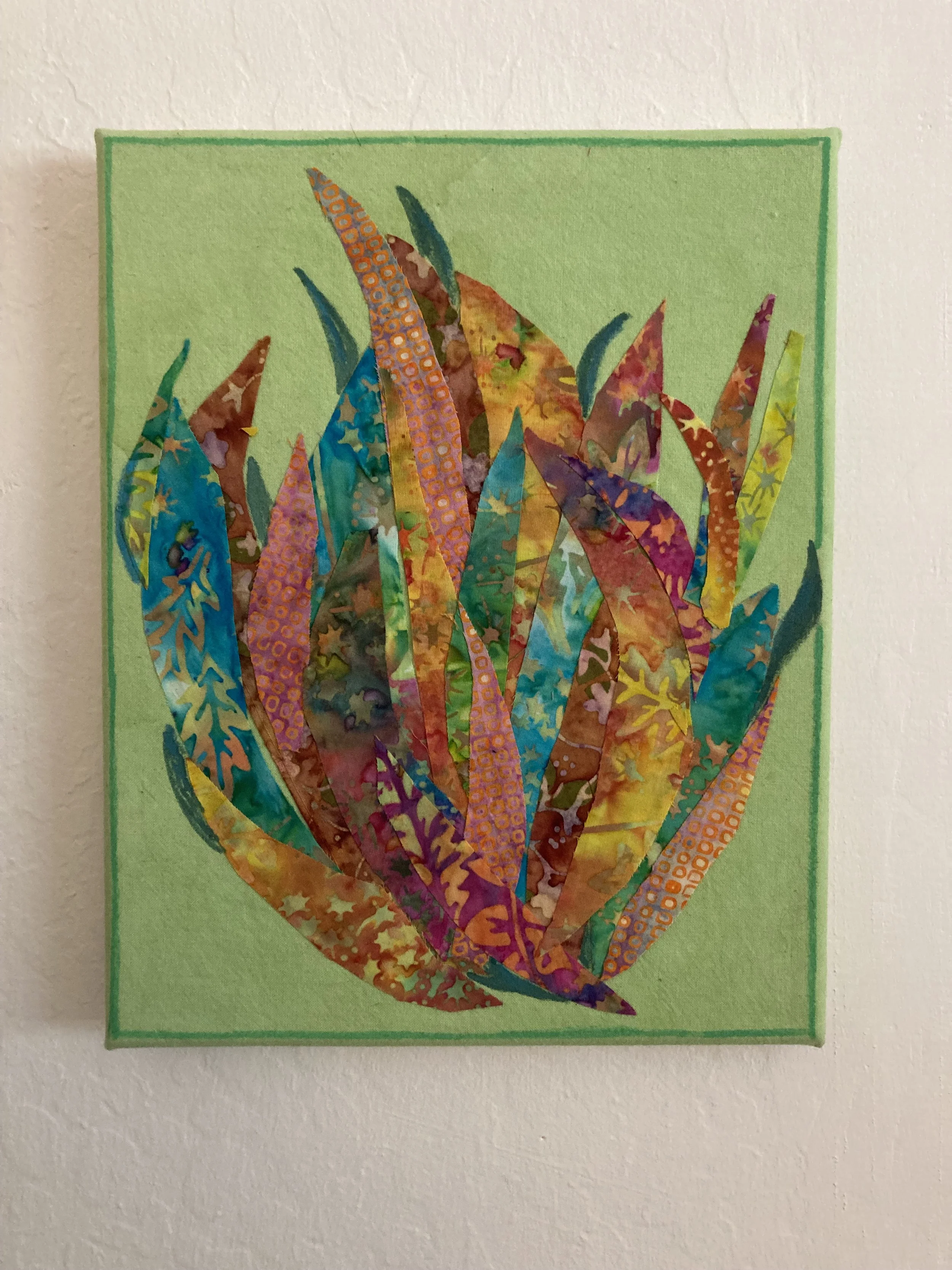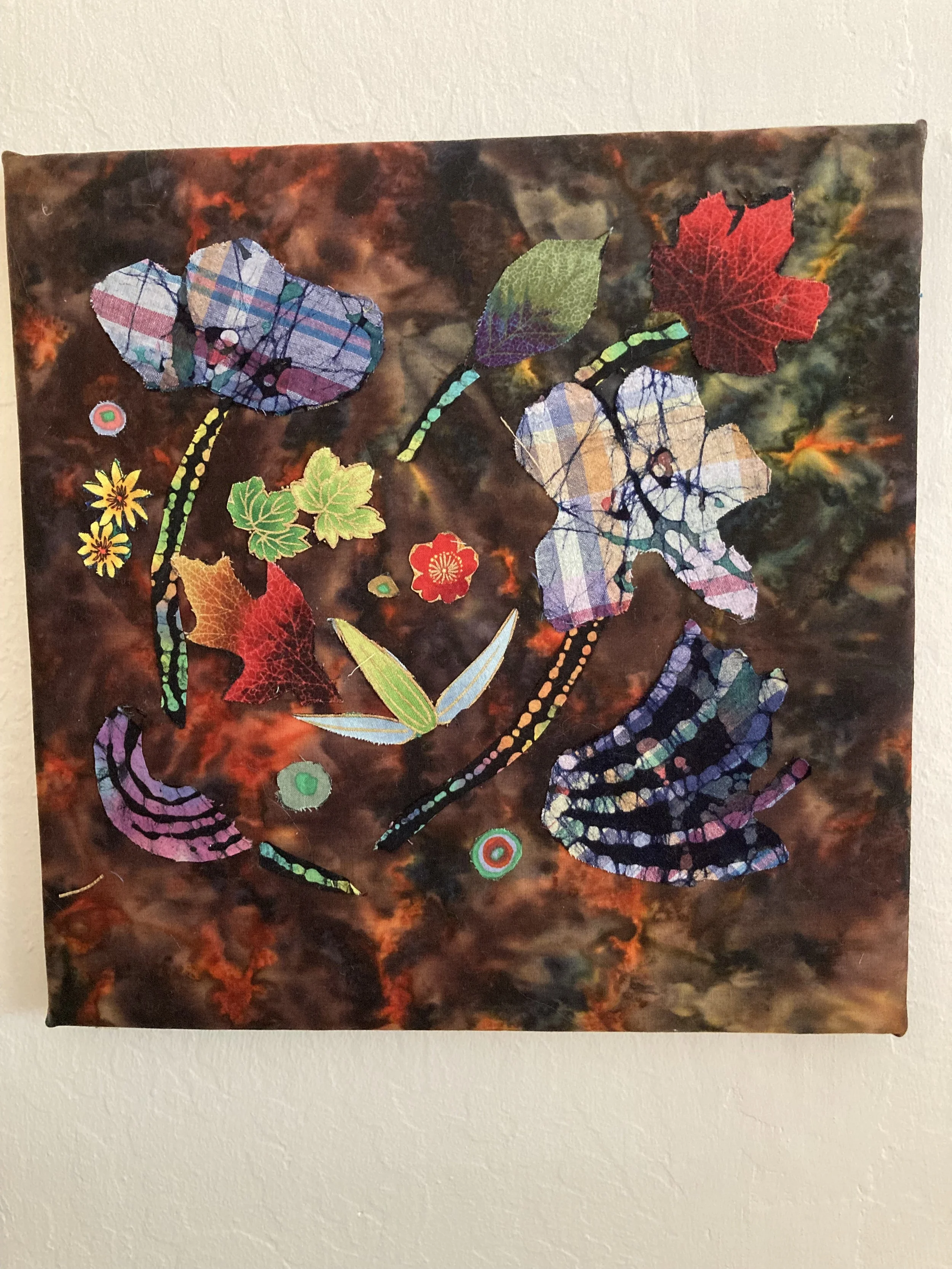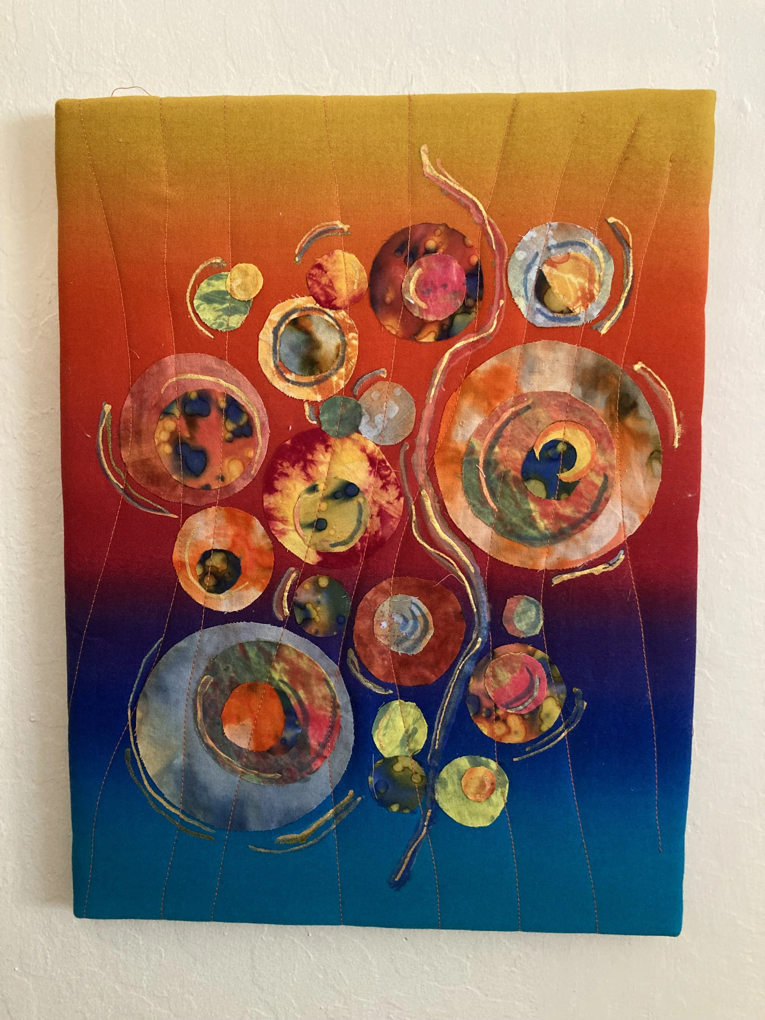 ARTISAN STATEMENT: I have been painting on silk and other fabric for years, doing collage work with fabric and making wall pieces. I quilt most of my pieces, sometimes quite heavily. I am also making fabric collages and adding acrylic paint.
