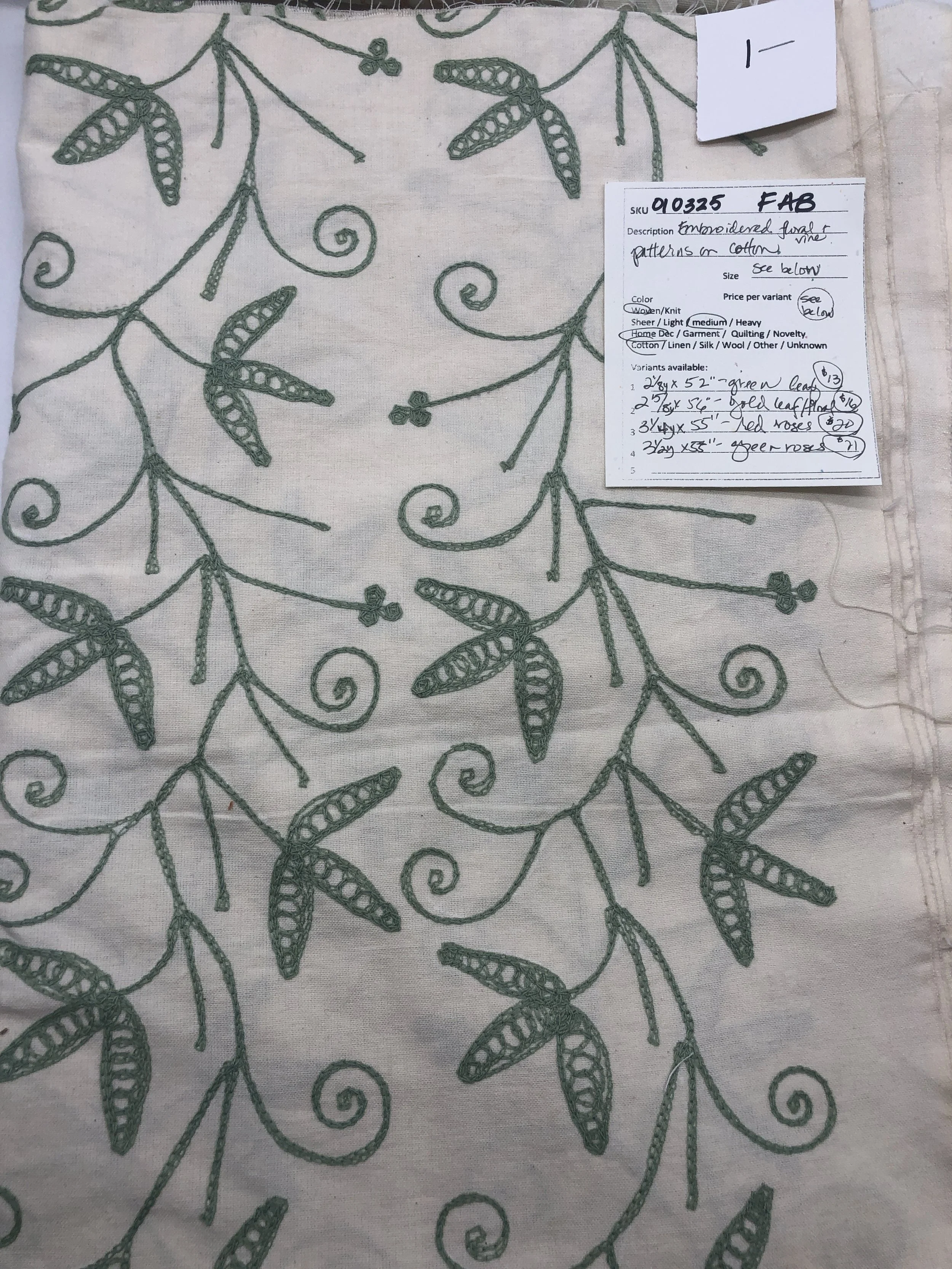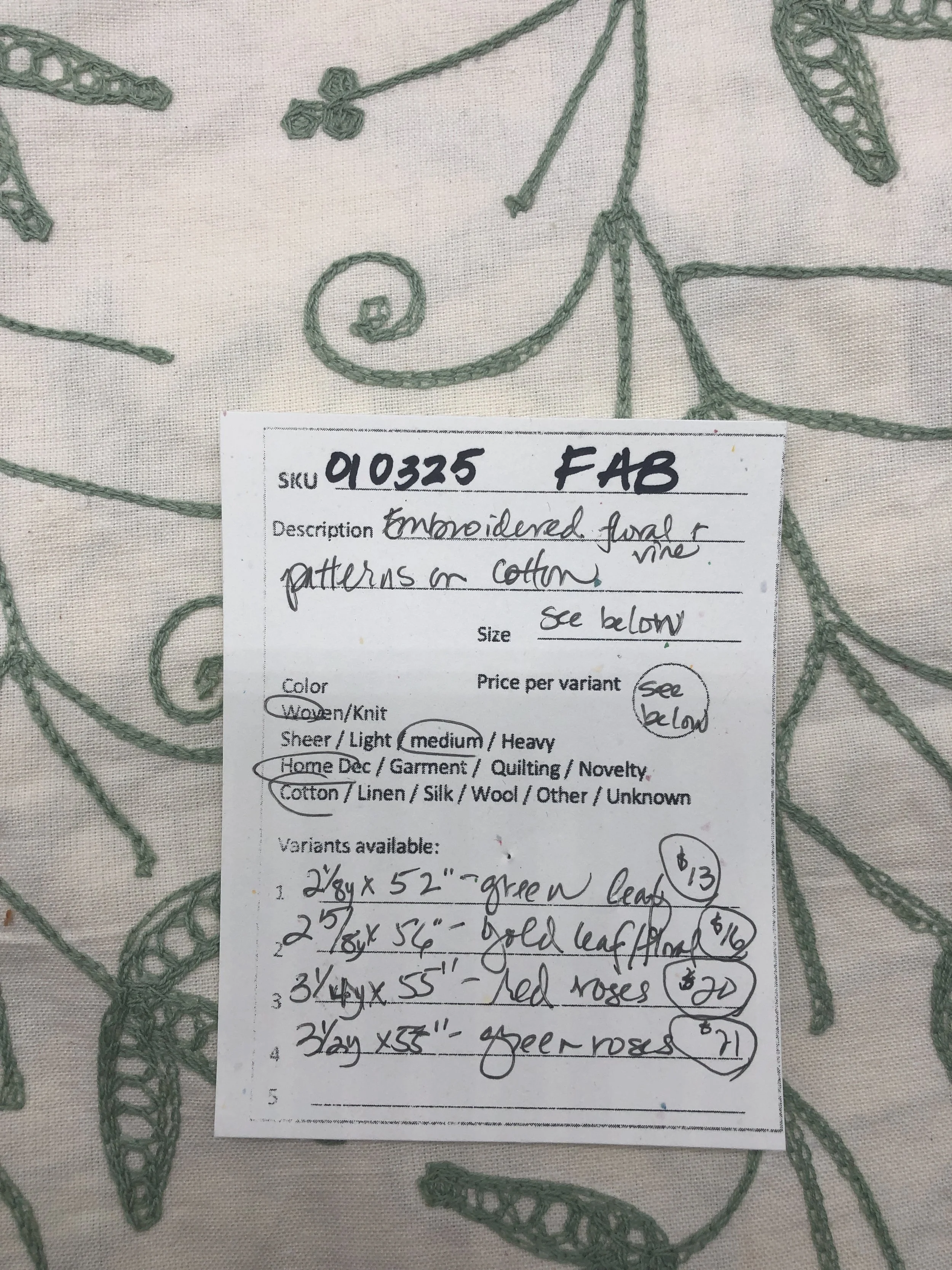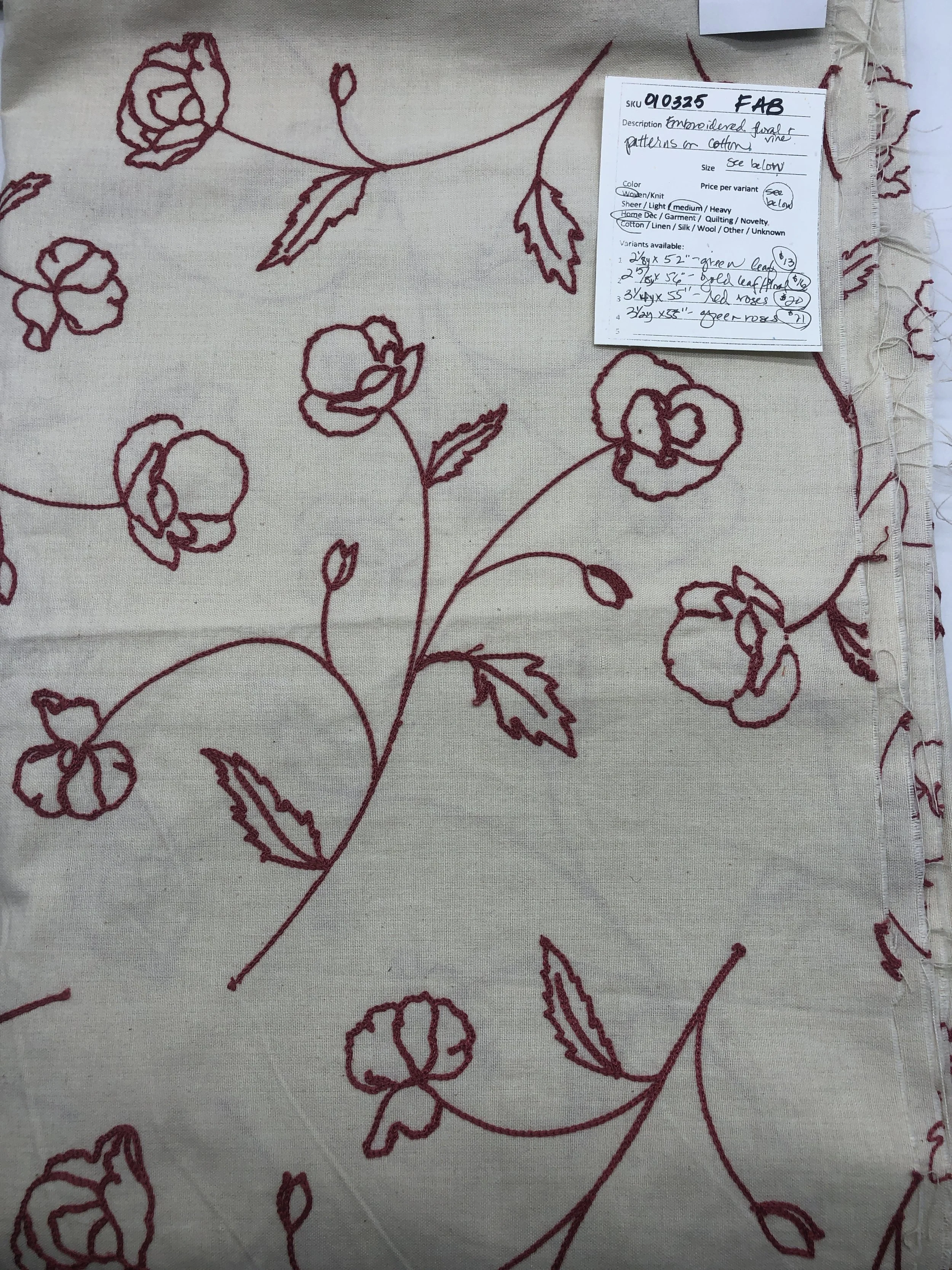 010325-F-AB Embroidered floral; Cotton; See variants
