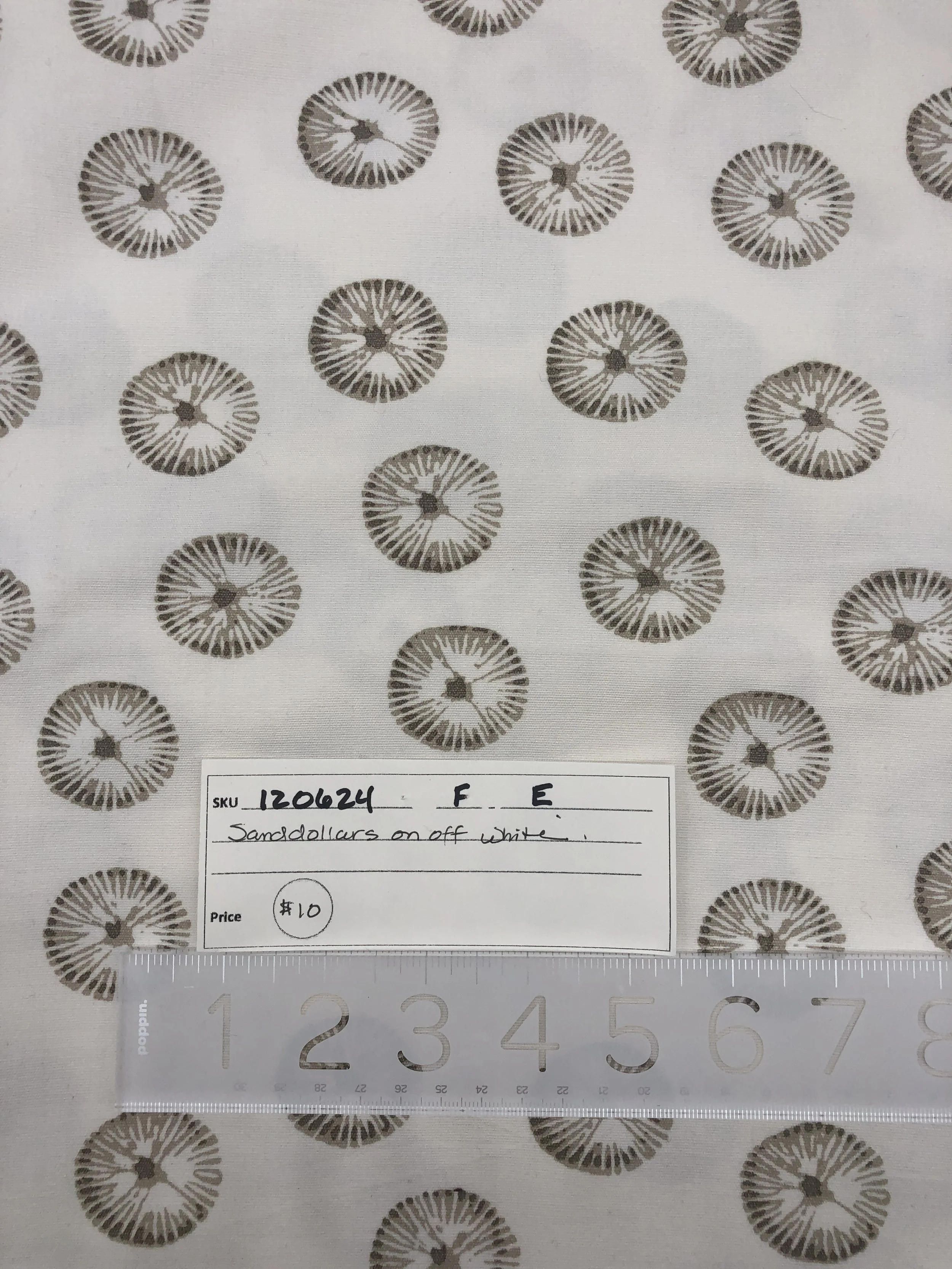 Online Store › 120624-F-E Sand dollars, brown on off-white cotton, 2 yd x 58" Image 1 of 2 Image 2 of 2 120624-F-E Sand dollars, brown on off-white cotton, 2 yd x 58" $10.00 Sand dollars, brown on off-white cotton, 2 yards x 58” wide Add To Cart Added! Sand dollars, brown on off-white cotton, 2 yards x 58” wide